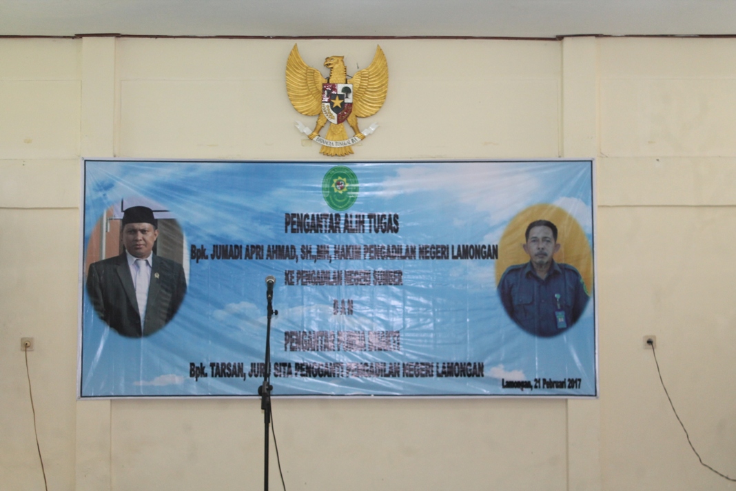 Pada Hari Selasa tanggal 21 Pebruari 2017, Pengadilan Negeri Lamongan mengadakan Acara Pengantar Alih Tugas Bpk. Jumadi Apri Ahmad, SH.,MH serta Pengantar Purna Bhakti Bpk. Tarsan.
