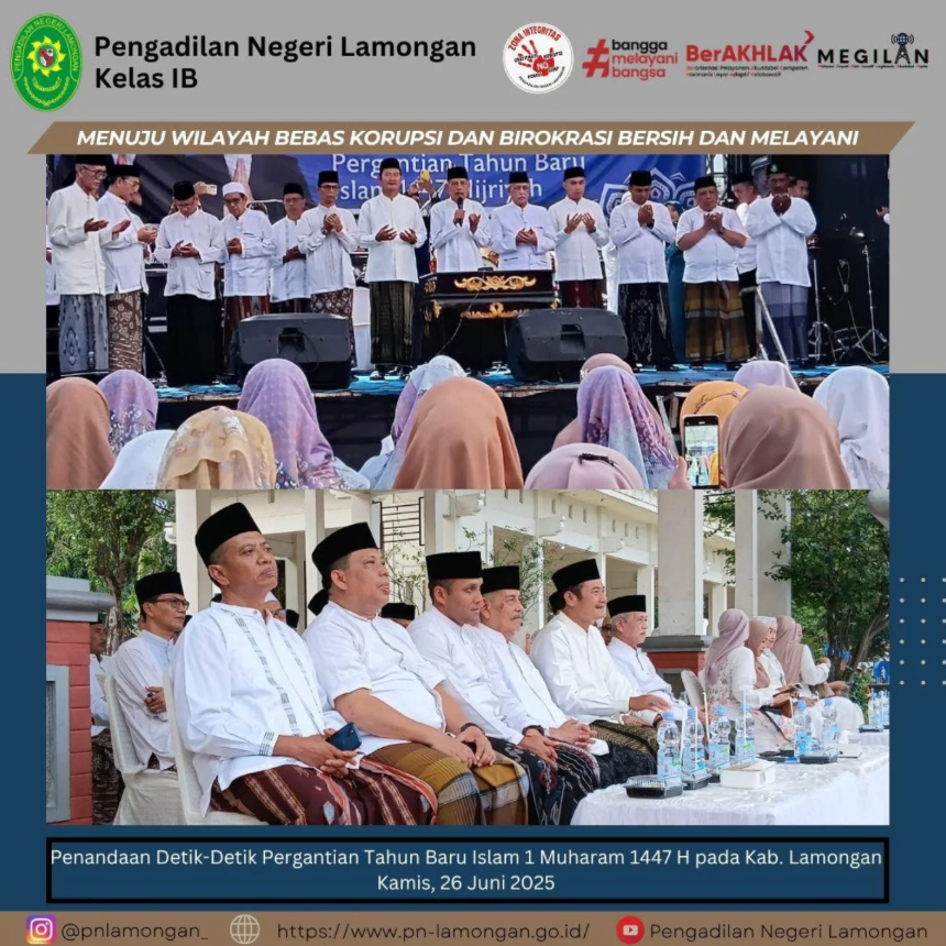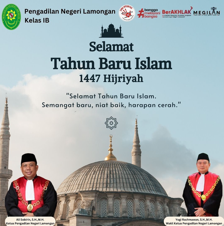 Pada hari Kamis, tanggal 26 Juni 2025 bertempat di Alun-alun Kabupaten Lamongan Ketua Pengadilan Negeri Lamongan Bapak Ali Sobirin, S.H., M.H. menghadiri undangan Penandaan Detik-Detik Pergantian Tahun Baru Islam 1 Muharam 1447 Hijriyah/ 2025 Masehi pada Kabupaten Lamongan.