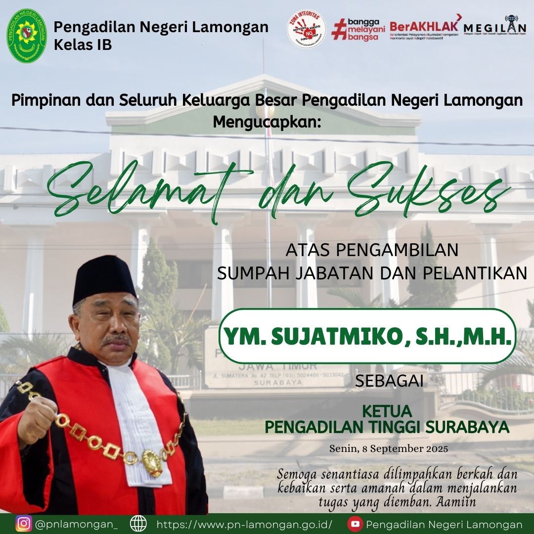 Pimpinan dan Seluruh Keluarga Besar Pengadilan Negeri Lamongan Mengucapkan: